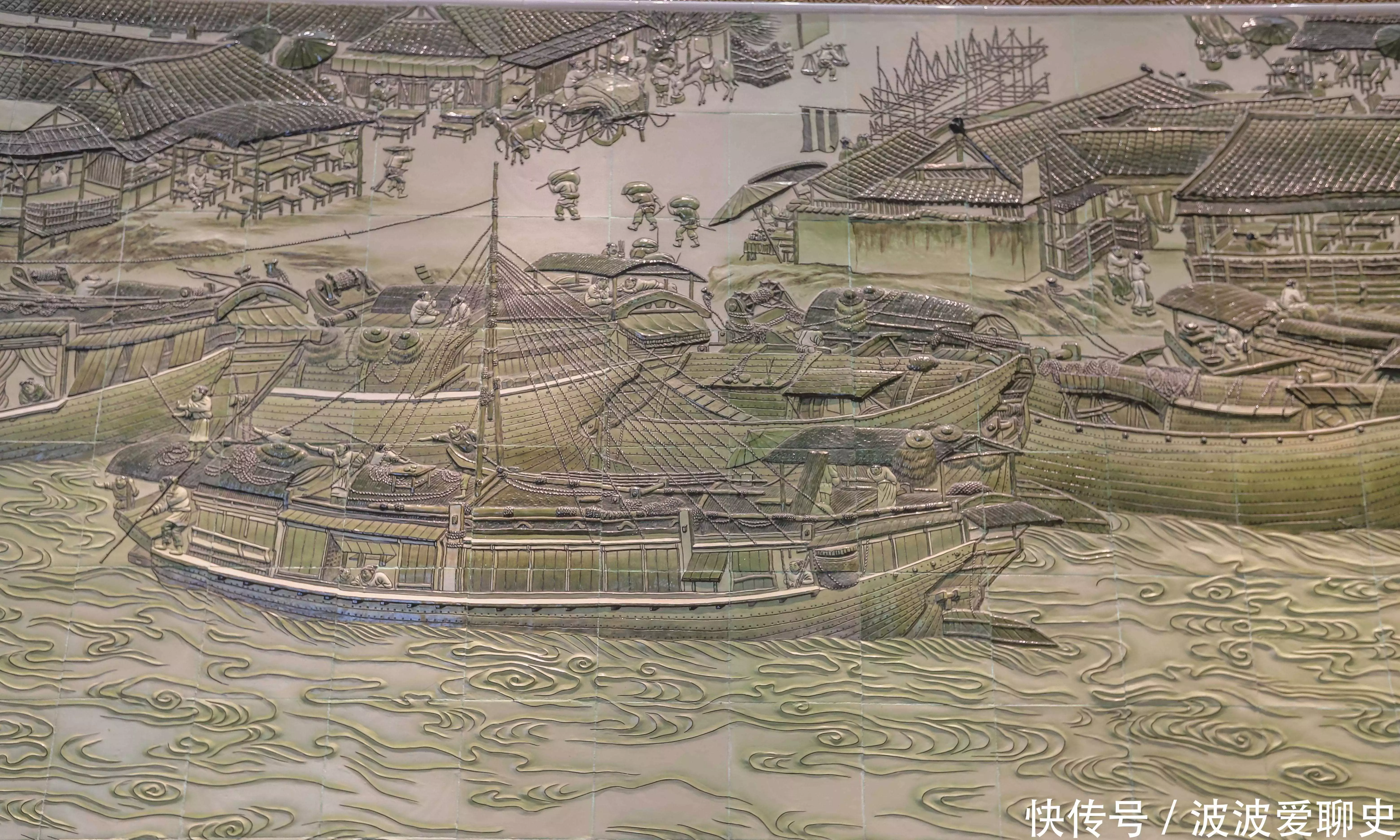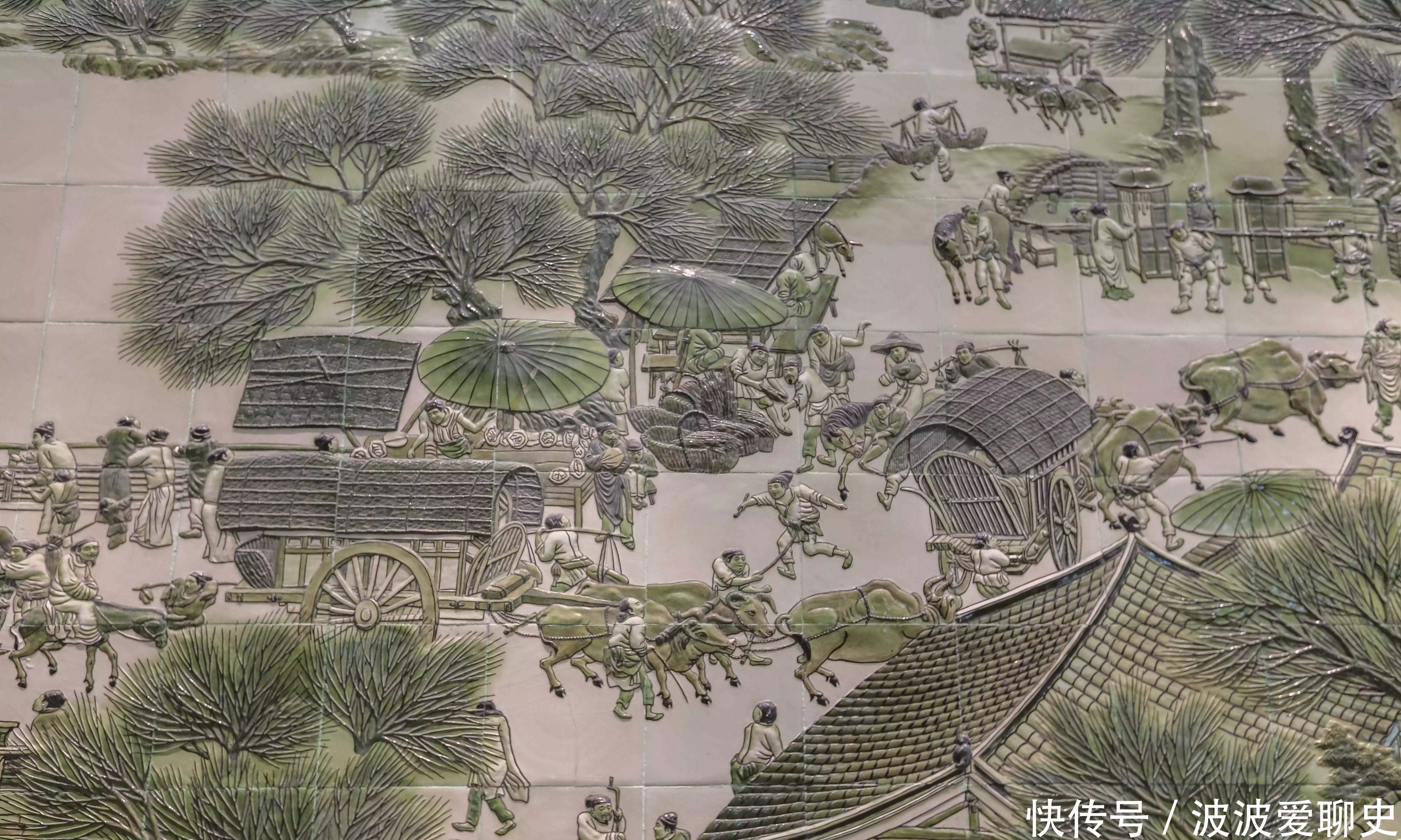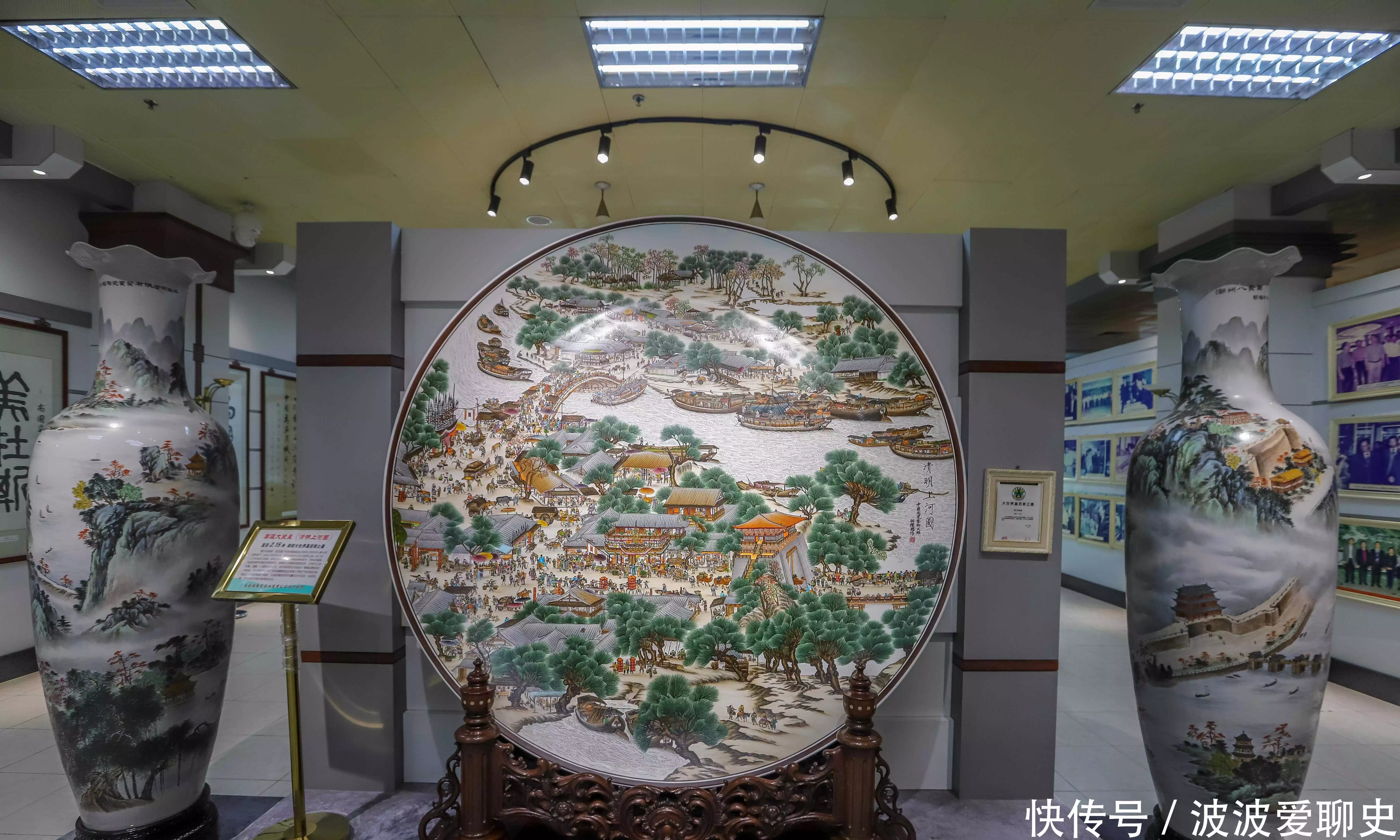 给我留下深刻印象的是摆放在一层大厅的《清明上河图》浮雕瓷壁画,这幅壁画以陶瓷为材质,上面的人物、建筑以连环画形式绘成,刻画细致,人物有立体感,神情各异,动态盎然,展示了高超的艺术手法和画技。