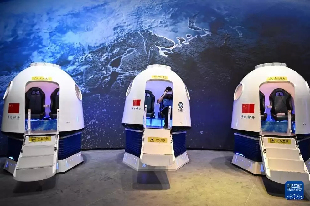 9月25日,工作人员在珠海太空中心新馆调试神舟飞船返回舱体验设备。