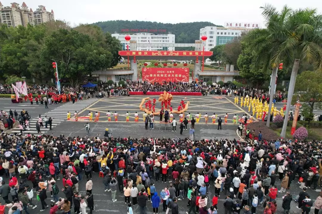 肇庆广府文化庙会是“2024请到肇庆过大年”文旅系列活动的压轴大戏。庙会当天,广府庙会在青年少年舞龙队和武术队激情四射的演出中盛大启动,现场热闹非凡,飞机特技表演、巡游、文艺演出等各项活动轮番登场,吸引众多市民游客驻足观赏拍照,感受广府地区民间艺术和特色文化,共享非遗之美、共品非遗年味。